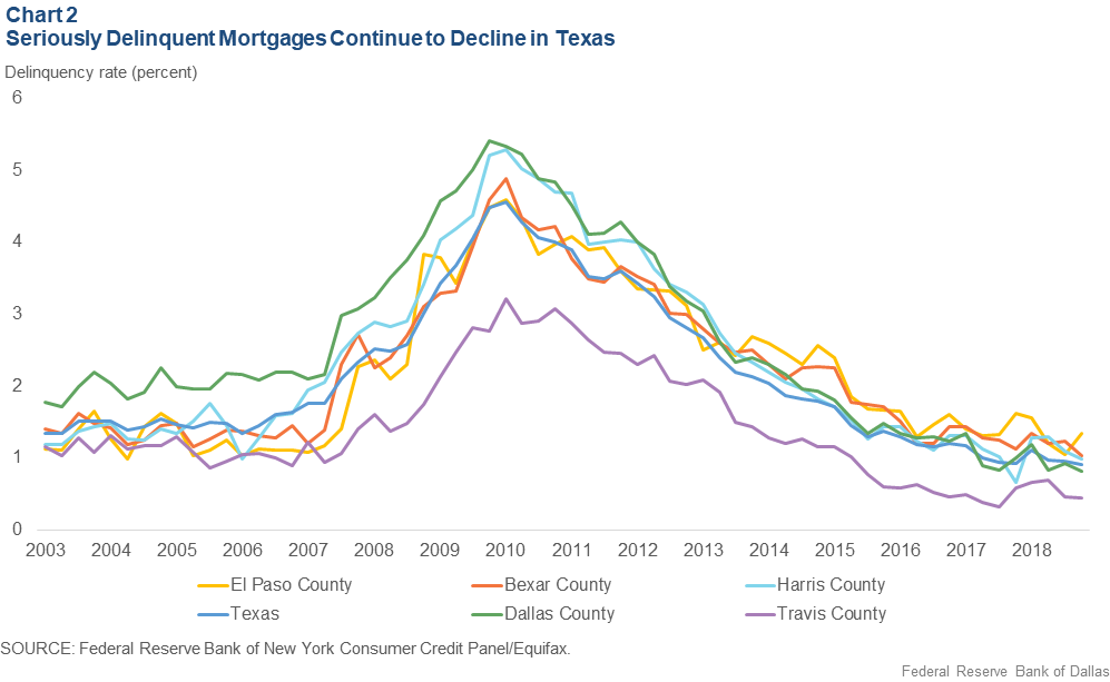 This type of debt tin be analyzed several ways. Two common ways to examine mortgage debt are by looking at volume and delinquencies. When looking at volume, you compare the amount of mortgages held by prime borrowers compared to subprime borrowers. Texas' share of prime borrowers taking out mortgage loans has gotten larger over time. It grew from 67 percent of the aggregate total volume of mortgages underwritten in 2006 to 81 percent by the yr 2018. [2] Consumer Credit Trends for Texas https://www.dallasfed.org/cd/cct/19ccttx.aspx